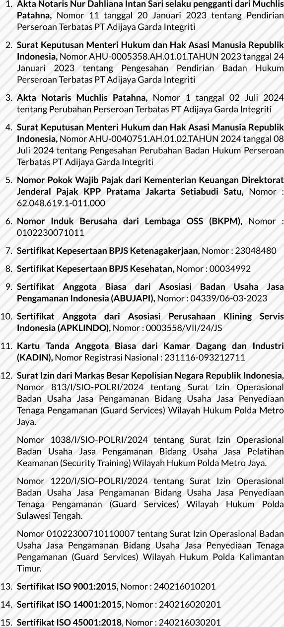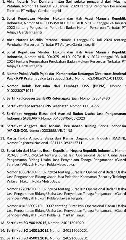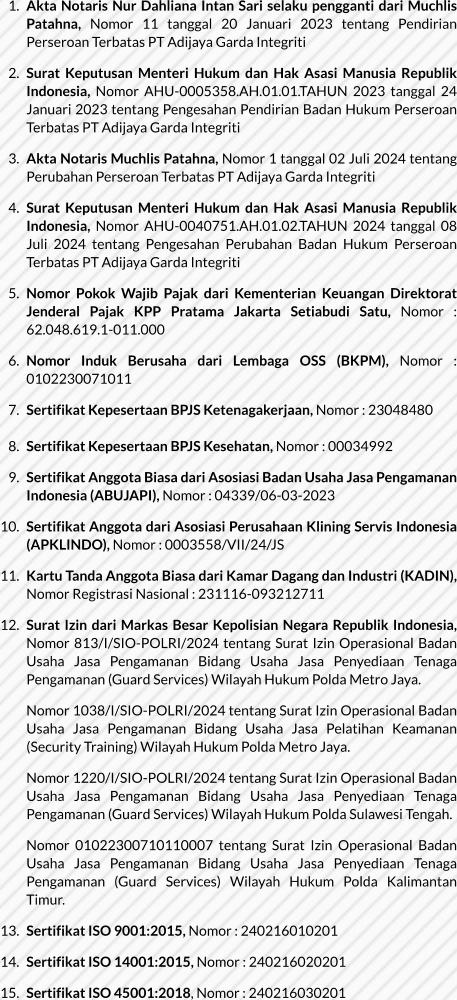 tenaga keamanan swakarsa didalam lingkungan kerja Perusahaan.